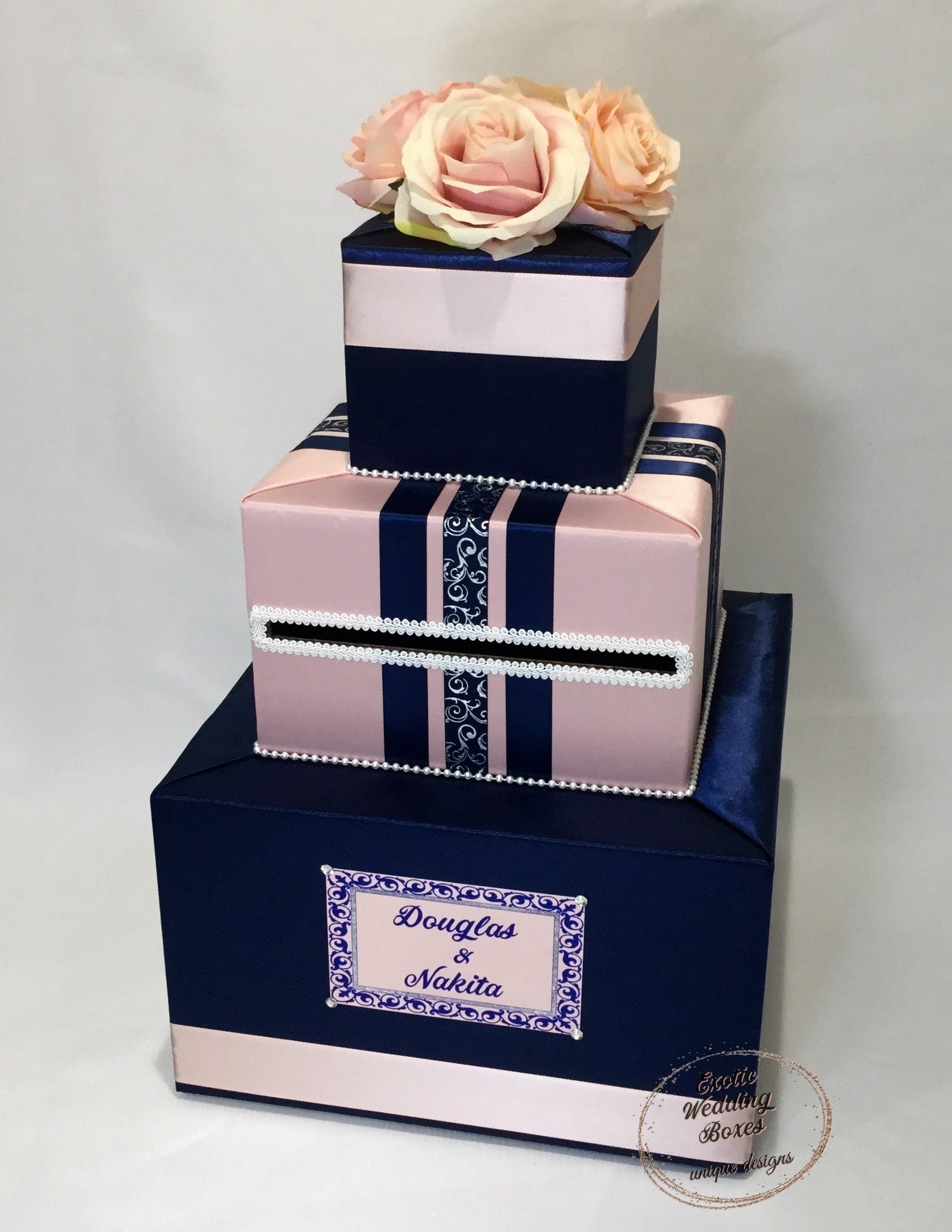 Navy Blue And Blush Pink Wedding Card Box Etsy